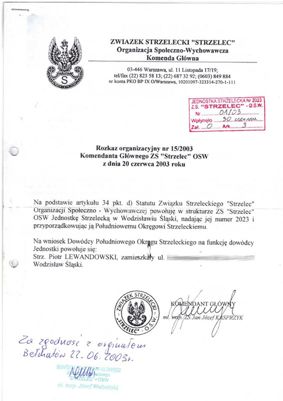 Przełomowym okresem w dziejach naszej Jednostki było powołanie do życia własnego stowarzyszenia, z odrębną osobowością prawną. Stowarzyszenia niezależnego od jakichkolwiek innych stowarzyszeń, w tym od ZS "Strzelec" OSW. Taką niezależność uzyskaliśmy z dniem 11 lutego 2010 roku, kiedy to Krajowy Rejestr Sądowy wpisał nasze stowarzyszenie do przedmiotowego rejestru pod numerem 0000348737.